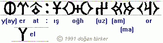 Foto © MS Encarta / Orkhun Yazısı © 1991 Doğan Türker